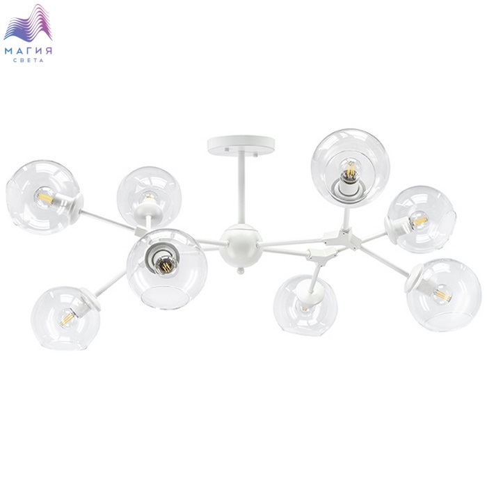 Потолочная люстра Lightstar Beta 785086 - новинка каталога Lightstar 2019. Данная модель подходит для комнат с невысокими потолками. Стиль исполнения - современный. Каркас люстры выполнен из металла и окрашен в белый цвет. Плафоны имеют сферическую форму, изготоылены из прозрачного стекла.