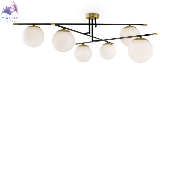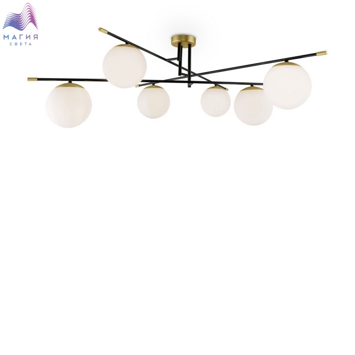 Современная серия Maytoni Nostalgia - новинка обновленного каталога 2021 года. В данной коллекции представлены большие потолочные люстры, подвесной светильник, 3 варианта бра, торшеры и настольная лампа. Металлический каркас окрашен в 2 цвета: черный и матовое золото. Абажуры выполнены из белого стекла, форма - шар.