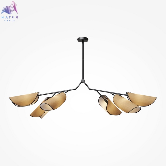 Текстильные плафоны серии Maytoni Organic напоминают листву тропических растений. Коллекция состоит из потолочных и настенных светильников. Каркас металлической арматуры асимметричен, плафоны выполнены из натуральной рогожки с тканевой окантовкой черного цвета.