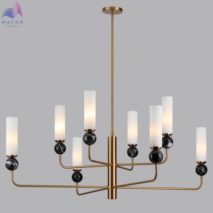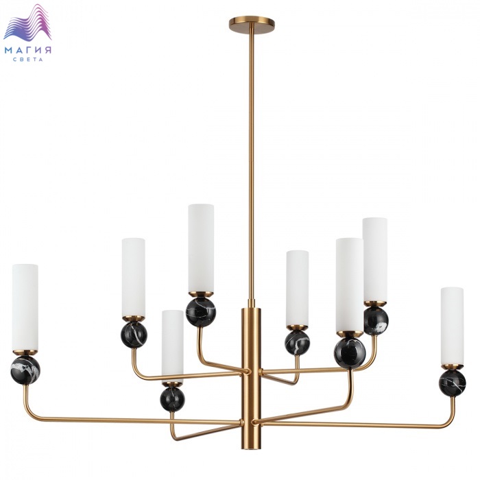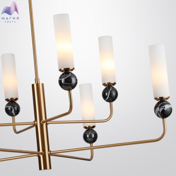 Серия Odeon light Lolla сочетает элегантную геометрию и природные материалы. В подвесном светильнике используется мрамор черного цвета, эффектно сочетающийся с металлом под латунь и вытянутым плафоном из стекла.