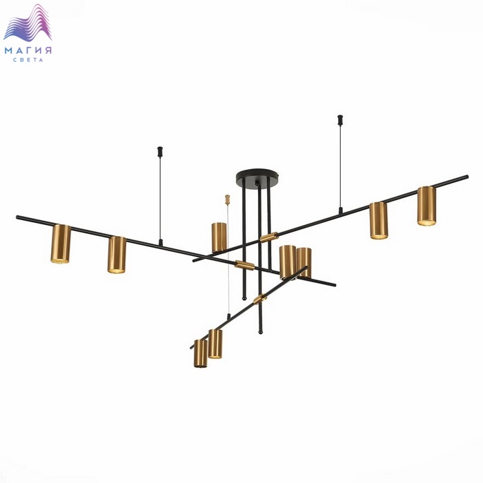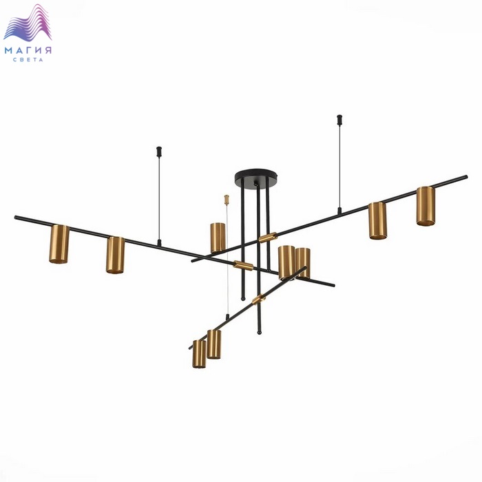 Коллекция ST Luce Sormano представлена двумя потолочными люстрами, исполненными в стиле "хай-тек". Металлический каркас состоит из прутьев черного цвета: на каждой перекладине находятся цилиндрические плафоны латунного цвета. Такое сочетание цветов смотрится акцентно!