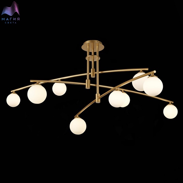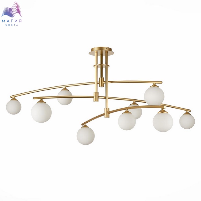 Светильники из серии ST luce Sembrare отличается сбалансированным минималистичным дизайном. Плафоны в форме сферы выполенны из белого стекла. Плафоны закреплены на концах длинных дуг, направленных в разные стороны.