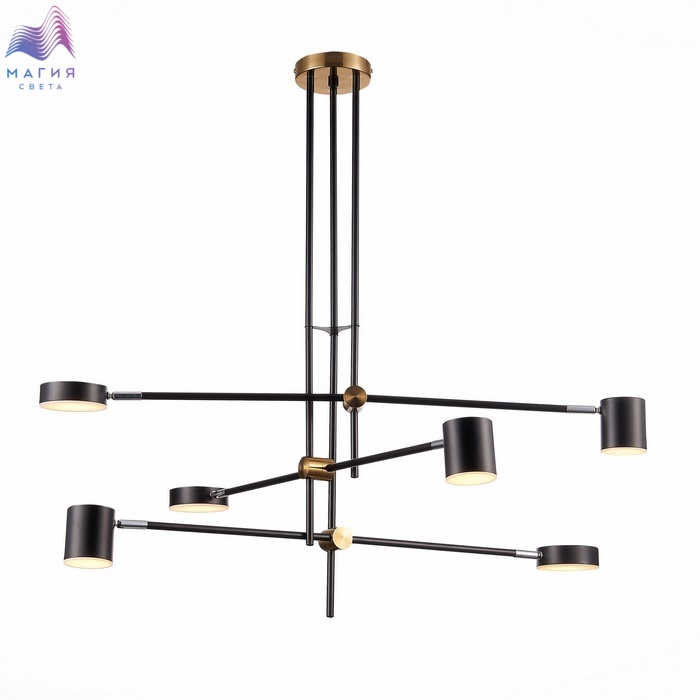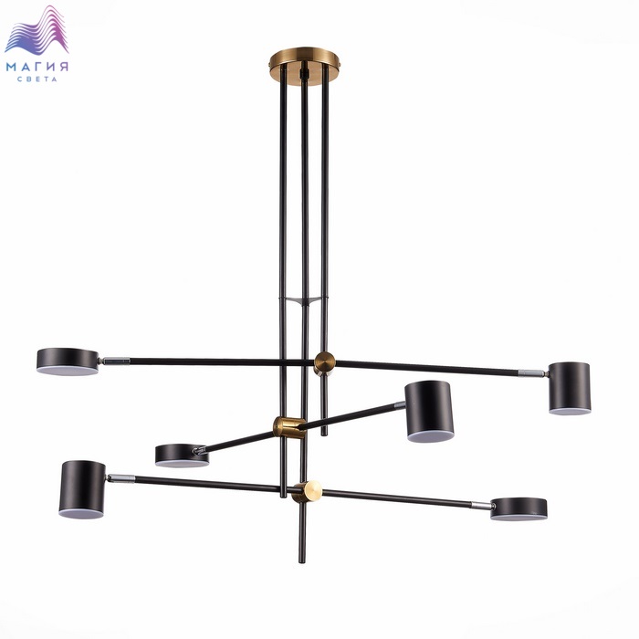 Потолочные люстры ST luce Rodrigo исполнены с учетом современных тенденций. Металлический каркас окрашен в черный и латунный цвета. Плафоны цилиндрической формы оснащены встроенными светодиодами теплого цвета свечения (цветовая температура - 3000K).