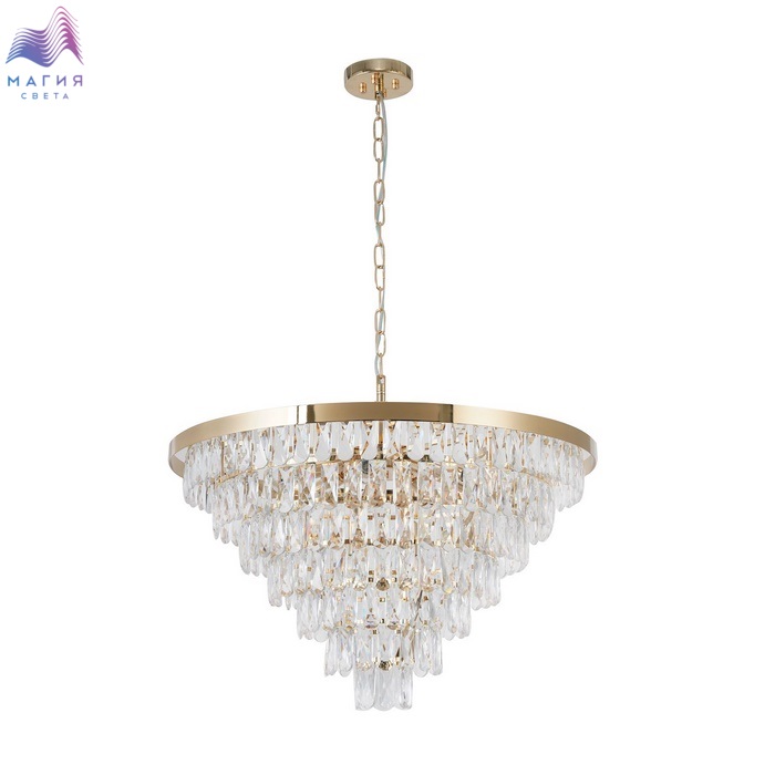 Классические люстры Favourite Cake превосходны! Объемные хрустальные элементы прозрачного цвета создают форму светильника. Основание изготовлено из металла и окрашено в благородный цвет французского золота. Люстры оснащены 2 вариантами крепления, поэтому могут быть повешены как с цепью, так и без нее.