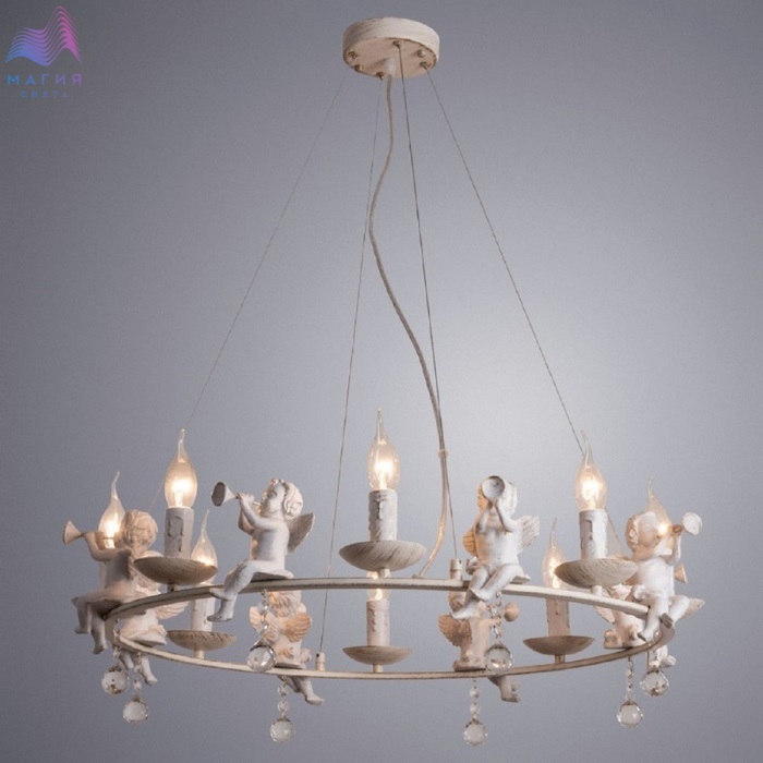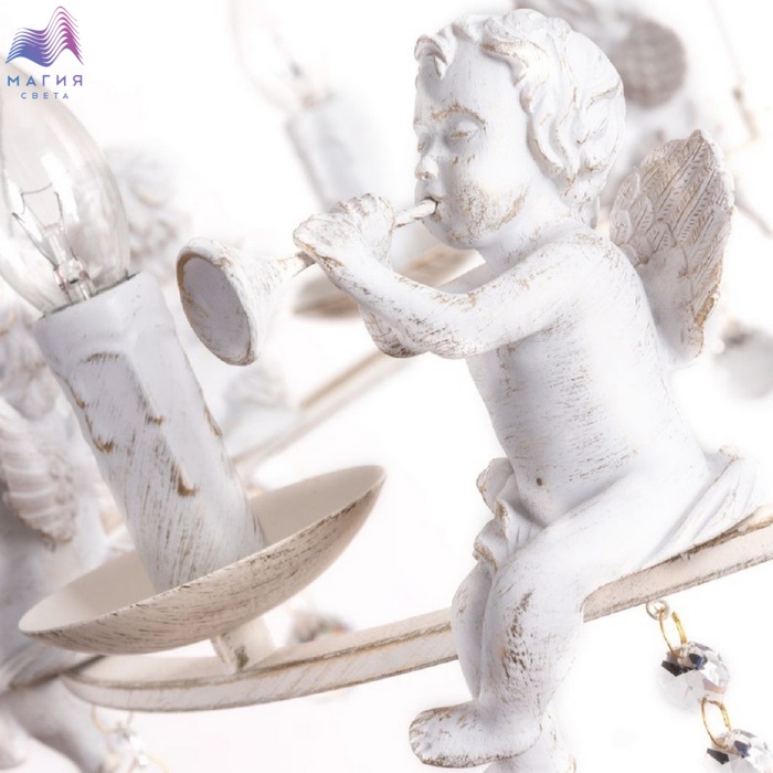 Классическая коллекция Arte Lamp Amur отличается очарованием! Светильники декорированы фигурками ангелочков и хрустальными подвесками. Металлическая арматура окрашена в бело-золотой цвет. Плафон изготовлен из матового стекла.