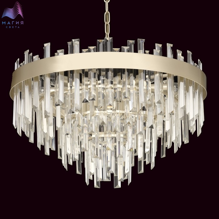 Хрустальная подвесная люстра Citilux Лаура CL301292. Материал: металл/хрусталь. Цвет: шампань/прозрачный. Хрустальные подвески кристально прозрачные с модной огранкой, расположены в несколько рядов ниспадающим каскадом.