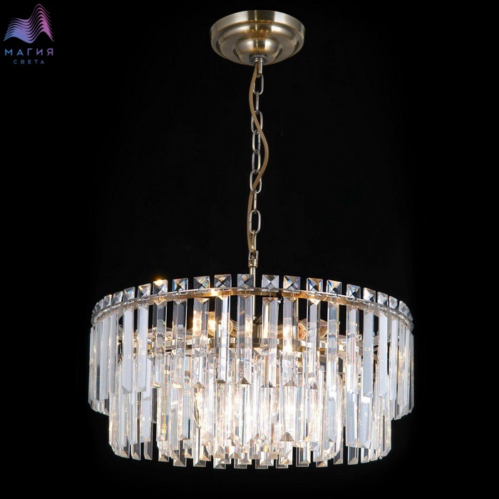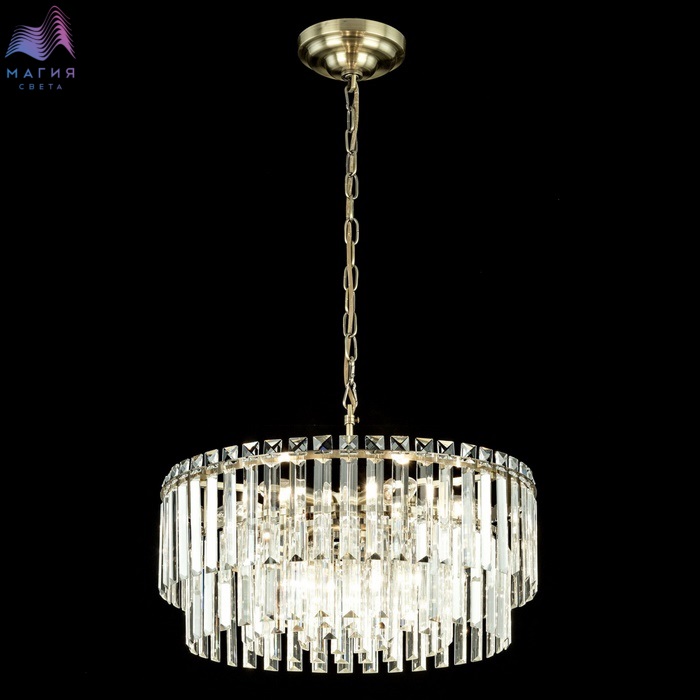Хрустальная люстра Citilux Фонда CL303193 на цепи. Корпус - металл, цвет - бронза. Хрустальные элементы, прозрачные, с модной огранкой «призма». Изделие подходит для помещений как с высокими, так и с низкими потолками, длина цепи регулируется при установке. Светильник походит для всех типов потолков, в том числе натяжных, тип крепления – планка.