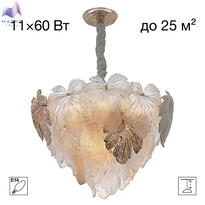 Подвесная люстра Citilux DRYAD CL305150. Материал: металл/стекло. Цвет: золото/белый/прозрачный. Высота люстры регулируется, ее можно установить на любой потолок, в том числе, и на натяжной.