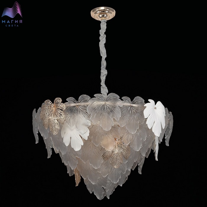 Подвесная люстра Citilux DRYAD CL305180. Материал: металл/стекло. Цвет: золото/белый/прозрачный. Высота люстры регулируется, ее можно установить на любой потолок, в том числе, и на натяжной.