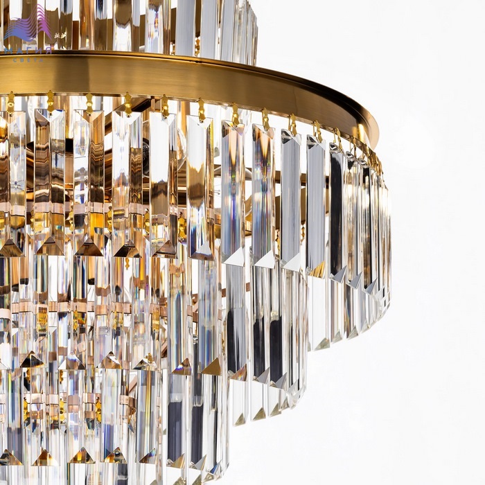Каскадная хрустальная люстра Citilux Ricky CL314253. Материал: металл/хрусталь. Цвет: бронза/прозрачный. Высота регулируется в диапазоне от 68см до 105см.