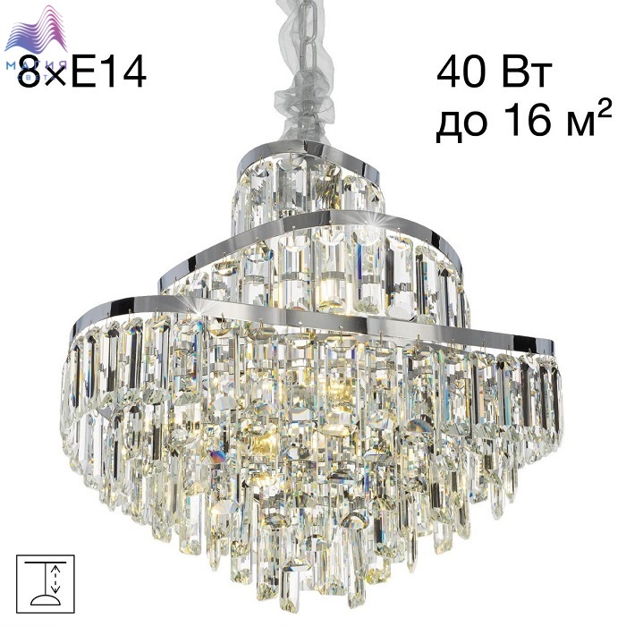 Хрустальная подвесная люстра Citilux NAIAD CL315151. Материал: металл/хрусталь. Цвет: хром/прозрачный. Площадь освещения - от 8 до 16м². Высота легко регулируется при монтаже.