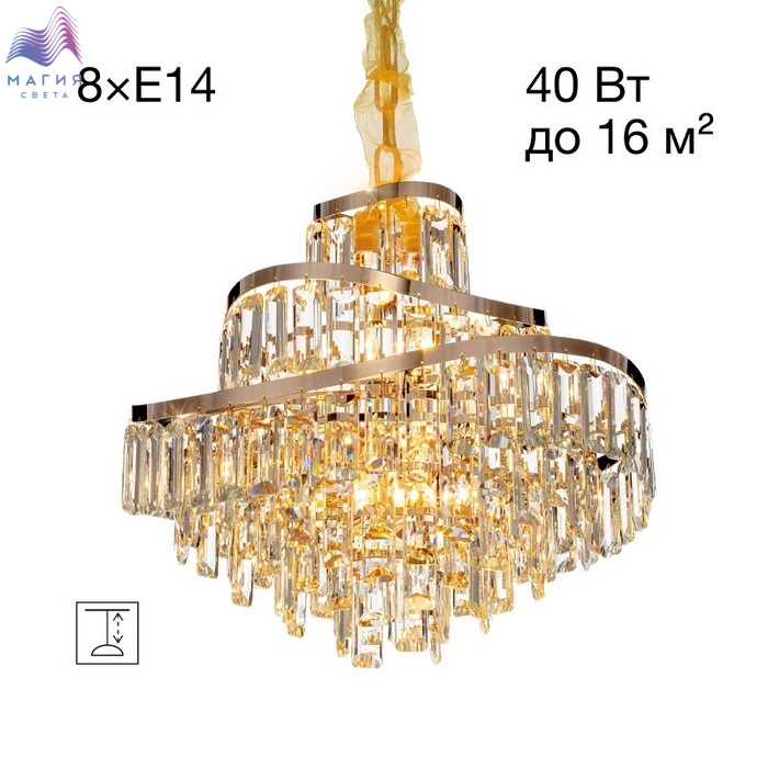 Хрустальная подвесная люстра Citilux NAIAD CL315152. Материал: металл/хрусталь. Цвет: золото/прозрачный. Площадь освещения - от 8 до 16м². Высота легко регулируется при монтаже.