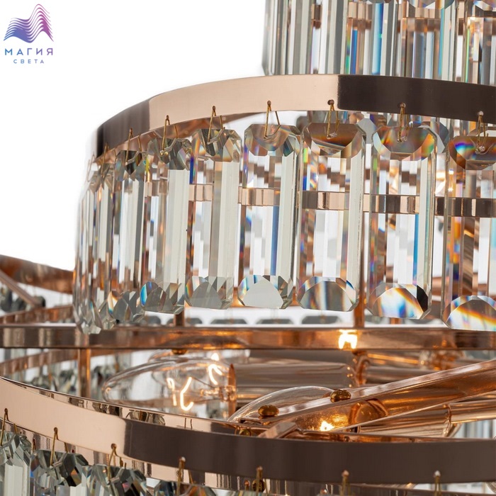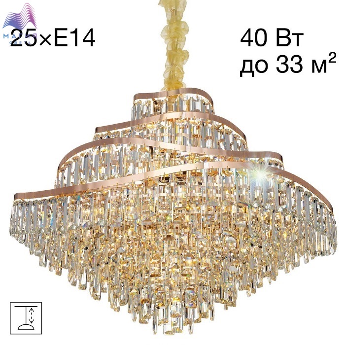 Хрустальная подвесная люстра Citilux NAIAD CL315192. Материал: металл/хрусталь. Цвет: золото/прозрачный. Площадь освещения - от 16 до 33м². Высота легко регулируется при монтаже.
