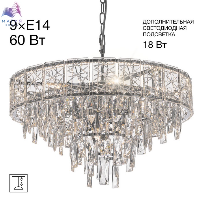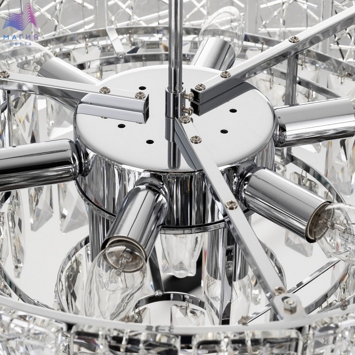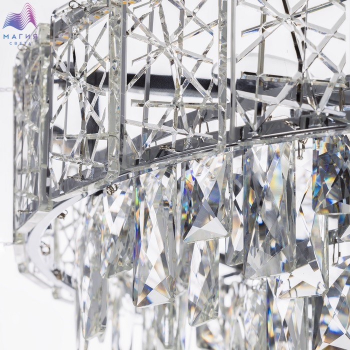Хрустальные светильники Citilux SAGRADA выполнены в стиле современной классики. Корпус металлический с гладким хромированным покрытием. Хрустальные элементы двух разных форм – прямоугольные пластины с алмазным гранением и кристально прозрачные подвески с современной огранкой — создают неповторимую игру света и придают люстре роскошный вид.