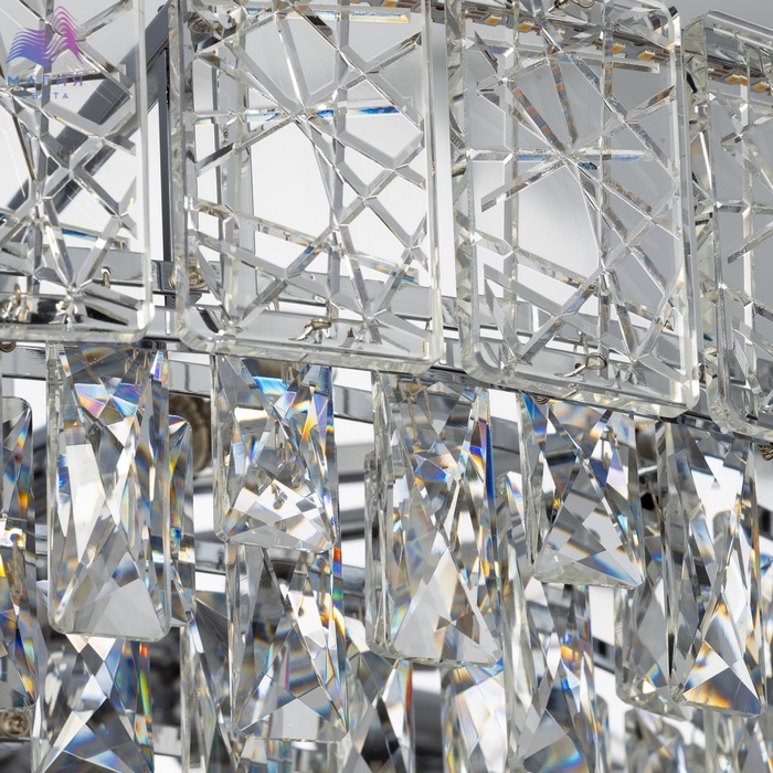 Хрустальные светильники Citilux SAGRADA выполнены в стиле современной классики. Корпус металлический с гладким хромированным покрытием. Хрустальные элементы двух разных форм – прямоугольные пластины с алмазным гранением и кристально прозрачные подвески с современной огранкой — создают неповторимую игру света и придают люстре роскошный вид.