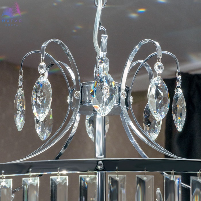 Хрустальная люстра Citilux Инга CL335181 на цепи, длину которой можно отрегулировать при монтаже. Материал корпуса - металл, цвет - хром. Подвески хрустальные, прозрачные с классической огранкой. Максимальная площадь освещения до 23м².