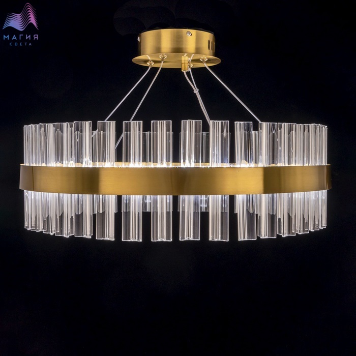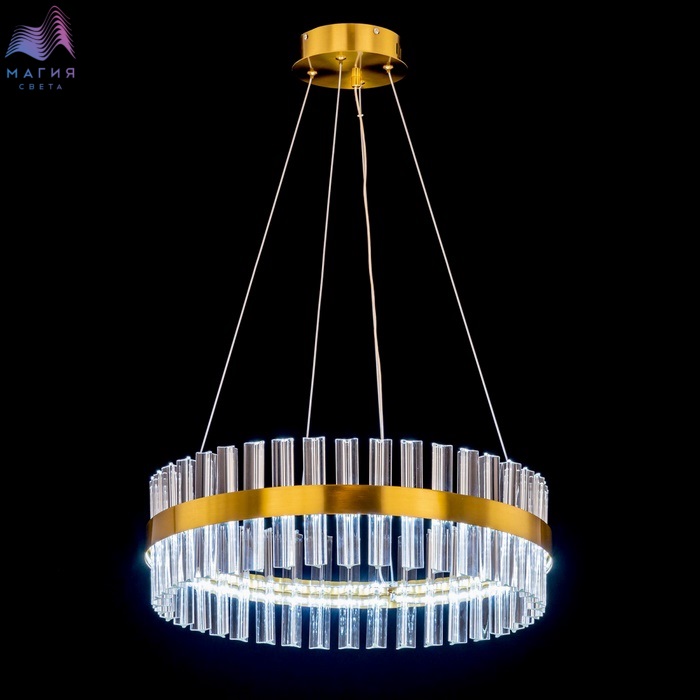 Хрустальная подвесная светодиодная люстра Citilux Рианна CL337053 с пультом ДУ. Корпус - металл, в форме кольца, цвет бронза. Хрустальные элементы кристально прозрачные. С помощью пульта ДУ можно включать и выключать светильник, изменять яркость 10-100%, цветовую температуру от 3000до 5500К, с возможностью настроить любые оттенки теплого, нейтрального или холодного света.