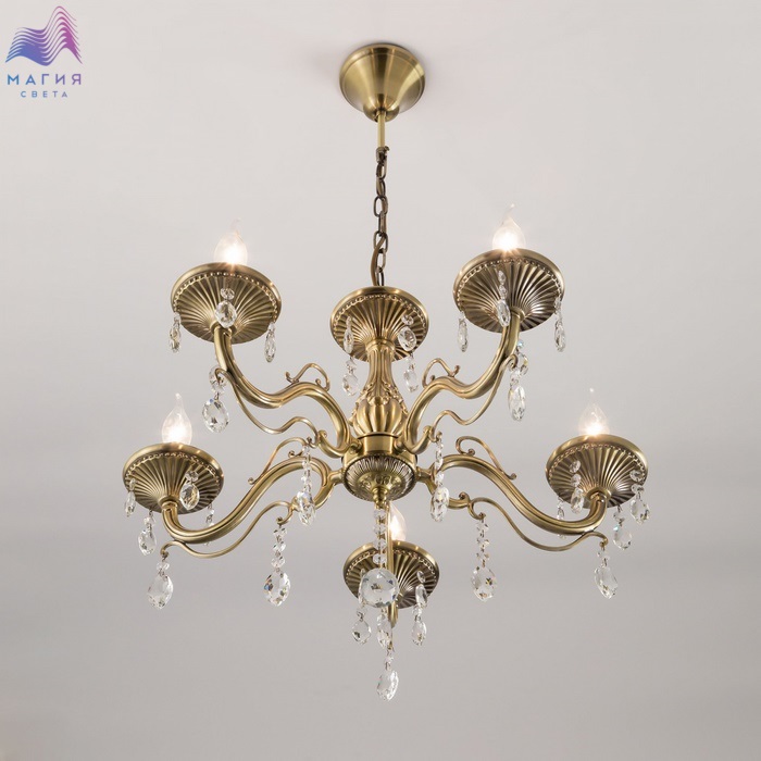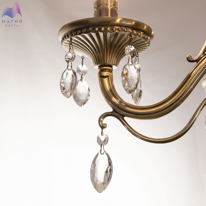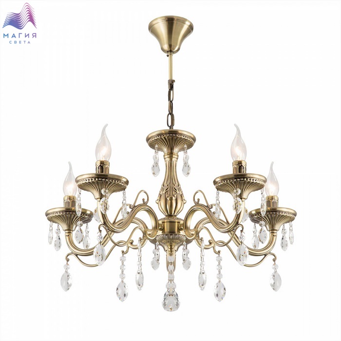 Подвесная люстра Ситилюкс Кармен CL404153 пятирожковая, выполнена в классическом стиле. Корпус модели металлический, с литыми рожками, цвет бронза. Люстра украшена хрустальными подвесками с красивой огранкой.