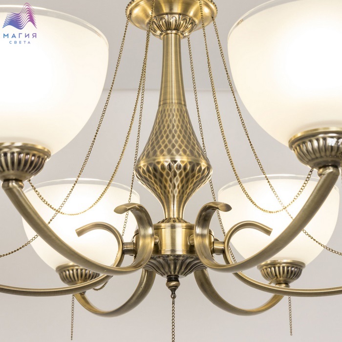 Люстра Франческа CL417263 в классическом стиле. Корпус - металл, с литыми рожками, цвет бронза. Плафоны стеклянные, полуматовые, со стильной прозрачной окантовкой. Тип крепления – планка. Люстра осветит около 19м².
