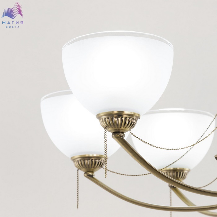 Люстра Франческа CL417283 в классическом стиле. Корпус - металл, с литыми рожками, цвет бронза. Плафоны стеклянные, полуматовые, со стильной прозрачной окантовкой. Тип крепления – планка. Люстра осветит около 24м².