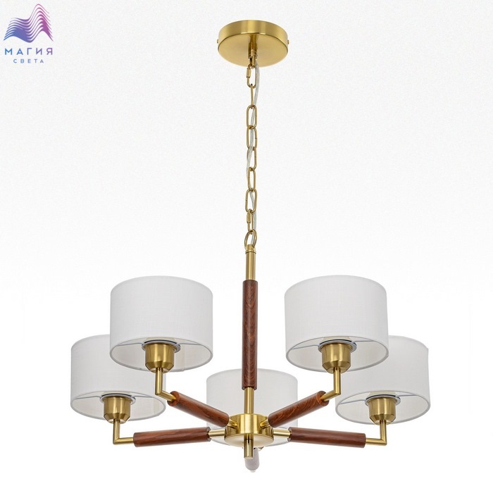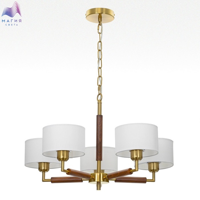 Подвесная люстра Citilux SHERMAN CL436152. Материал: металл/текстиль. Цвет: бронза/венге/молочно-белый. Пять рожков с абажурами в форме цилиндра, изготовленных из молочно-белой ткани с чуть шероховатой текстурой. Высота подвеса регулируется.