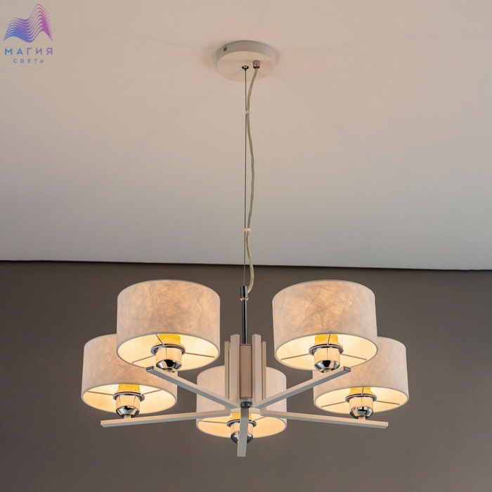 Подвесная люстра Citilux Тильда CL469150 для стильных интерьеров, оформленных в светлых тонах. Корпус светильника металлический, цвет белый матовый с декоративными хромированными элементами. Абажуры цилиндрической формы, изготовлены из текстурной ткани на подложке из оптического полимера.