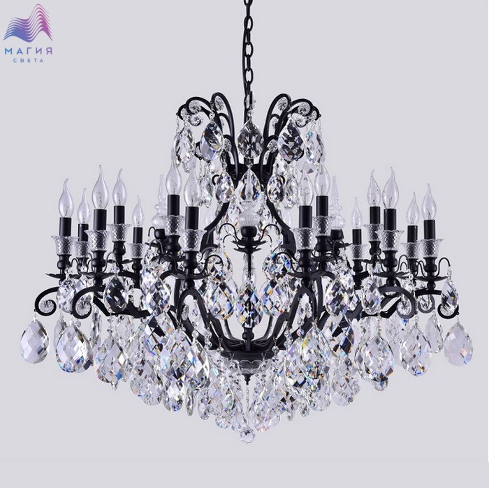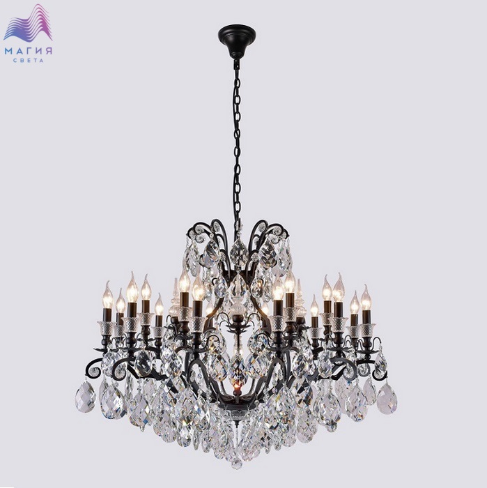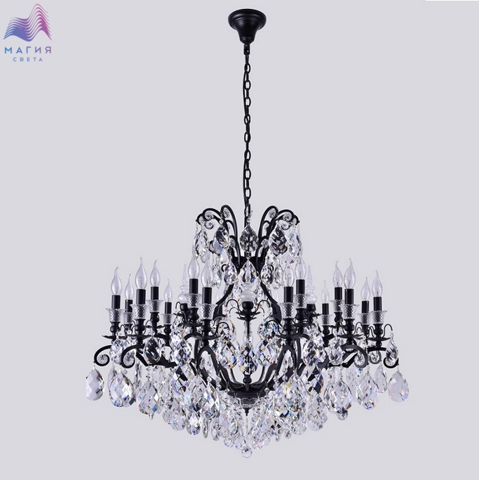 Классическая коллекция Crystal lux Magnifico станет украшением спальни, гсотиной, каминного или обеденного залов. Металлический каркас черного цвета обильно декорирован каплями, исполненными из прозрачного хрусталя. Данные модели смогут вписаться в стили лофт, американский винтаж, ретро, готика.