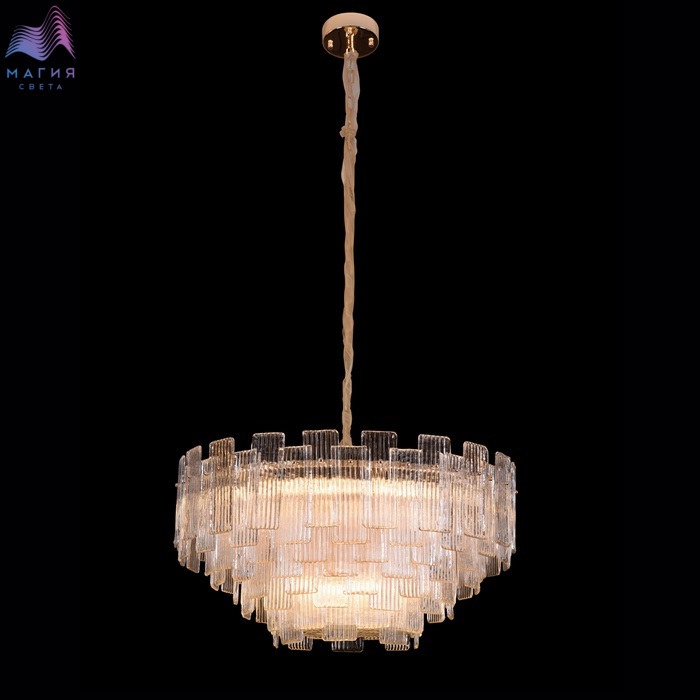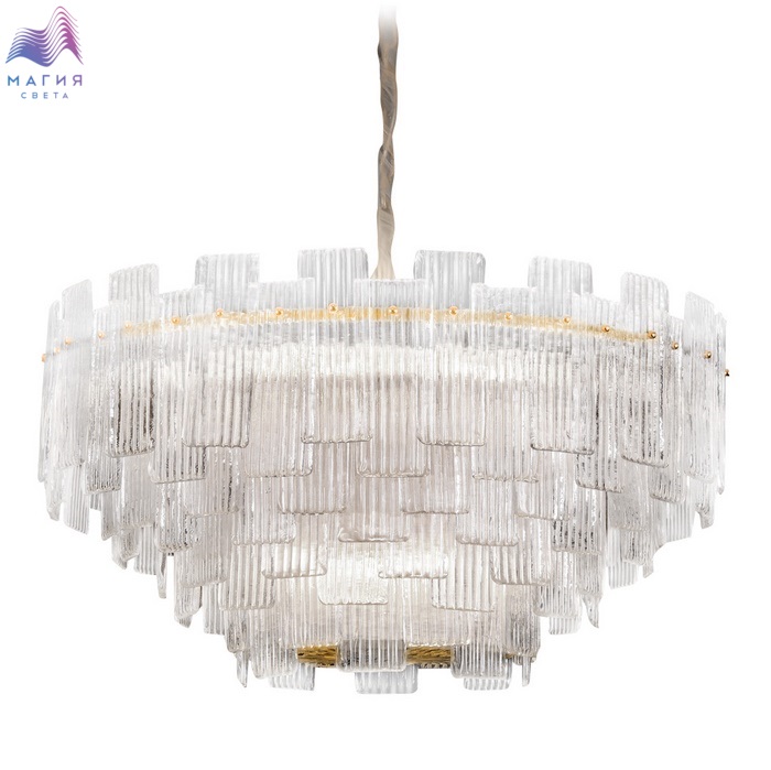 Подвесная люстра Delight Collection 8113 L9 поражает своей роскошью! Плафон состоит из множества стеклянных пластин. Золотая арматура подчеркивает классическую стилистику данной модели.