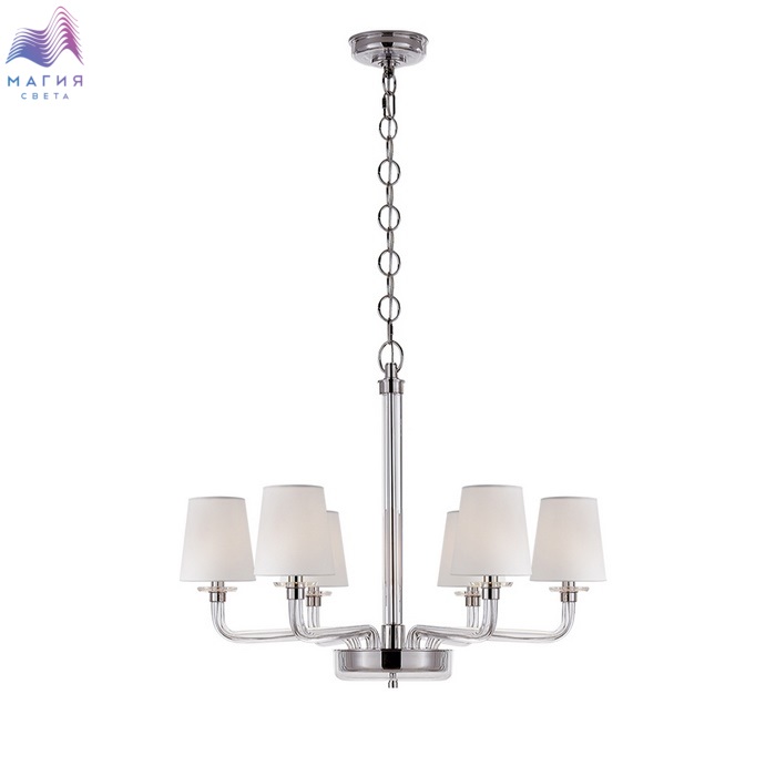 Подвесная люстра Delight Collection BRCH9021-6 с шестью абажурами белого цвета выглядит изящно и легко! Основание люстры выполнено из металла никелированного цвета и прозрачного стекла.