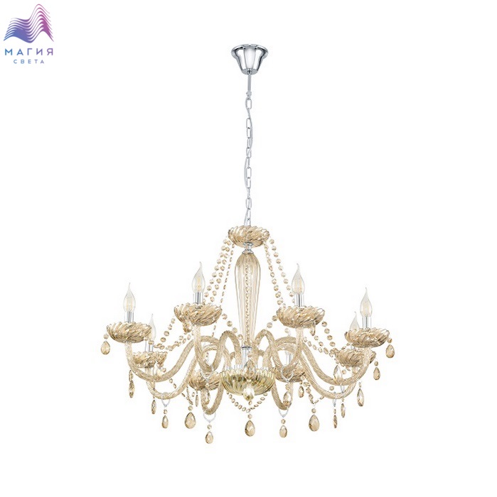 Eglo Basilano исполнена в коньячном цвете. Металлический каркас обрамлен стеклом и декорирован стеклянными подвесками. В серии представлены подвесные люстры и бра.