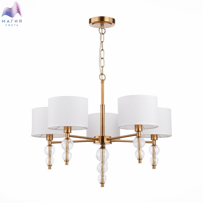 Коллекция Evoluce Ramer в обновленном каталоге 2021 -2022 годов выпущена в новом цвете - латуни. Светильники обладают лаконичным и изысканным дизайном. Прямые рожки украшены прозрачными сферами из стекла. Абажуры изготовлены из белой ткани.Высота люстр регулируется длиной цепи.