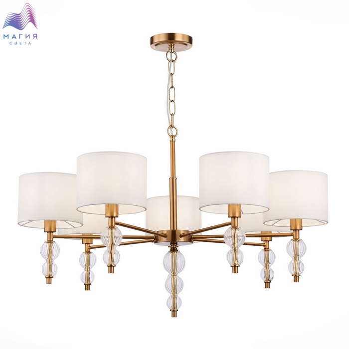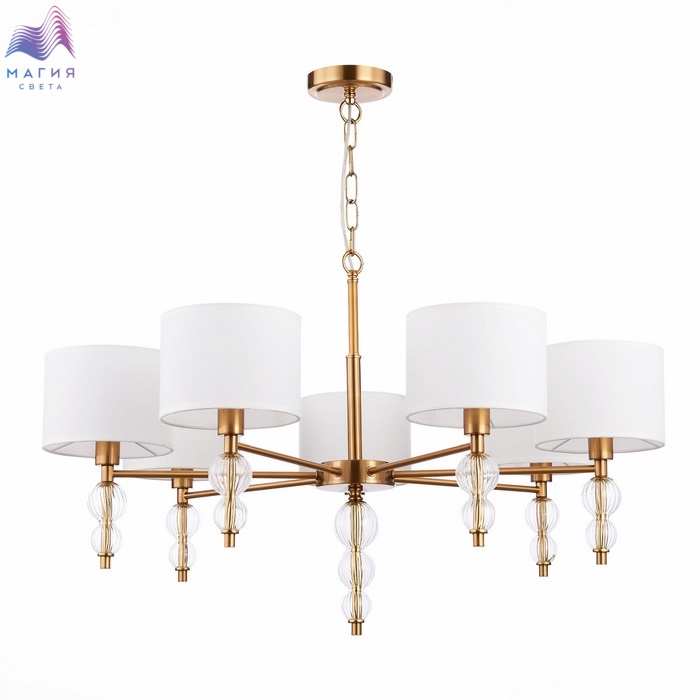 Коллекция Evoluce Ramer в обновленном каталоге 2021 -2022 годов выпущена в новом цвете - латуни. Светильники обладают лаконичным и изысканным дизайном. Прямые рожки украшены прозрачными сферами из стекла. Абажуры изготовлены из белой ткани.Высота люстр регулируется длиной цепи.
