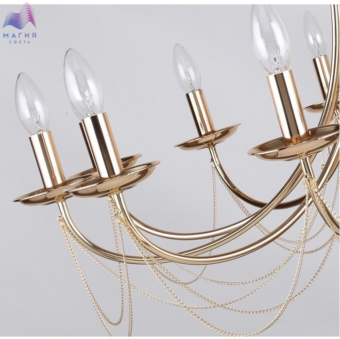 Серия F-Promo Plini представлена в двух цветах: кофейном и золотом. В серии есть однорожковое и двухрожковое бра, подвесные люстры на 7, 12, 18 и 20 рожков.