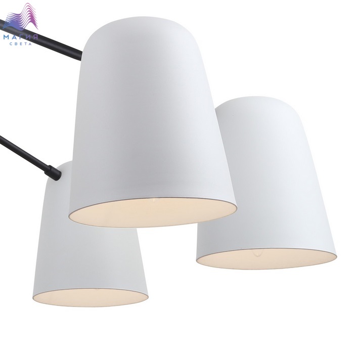 Современная серия F-Promo Trick прекрасно впишется в скандинавский интерьер. Металлический каркас покрыт черно краской и дополнен металлическими плафонами белого цвета.