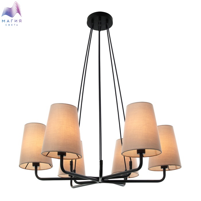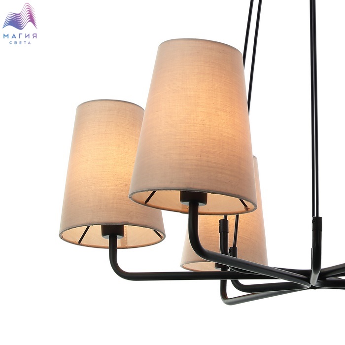 Современная коллекция Favourite Pfefferling имеет лаконичный дизайн. Металлический каркас окрашен в черный цвет и дополнен текстильными бежевыми плафонами. Люстры подвешиваются на тросах, высоту тросов можно регулировать.