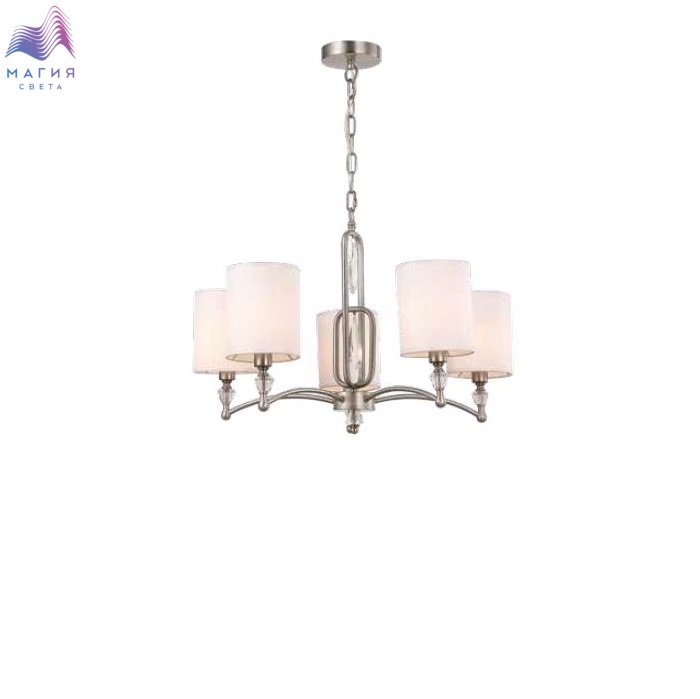 Светильники отличаются облегченной конструкцией без традиционного стержня в форме акри. Хрустальные элементы придают особый шарм моделям. Металлические детали покрыты латунной или никелированной краской. Тканевые абажуры создают мягкое свечение. Широкая линейка предлагает подвесные люстры на 5, 7, 8 и 12 плафонов, бра, настольную лампу и торшер.