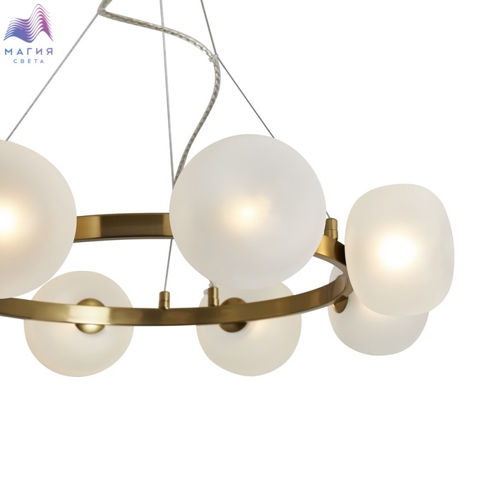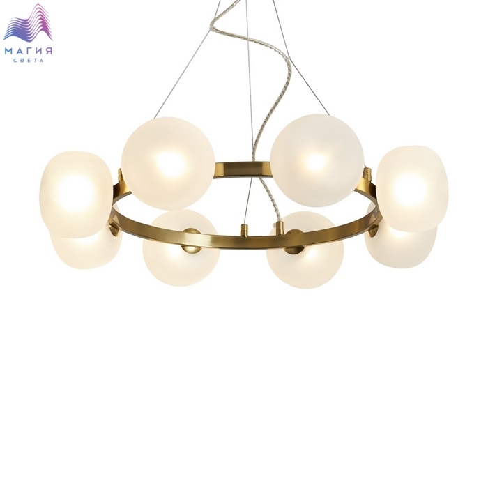Светильники из серии Freya Donuts имеют необычную, немного сплющенную форму плафонов. Белые матовые абажуры создают нежное и приглушенное освещение в помещении. Арматура выполнена из металла в цвете латунь. Коллекция представлена подвесными люстрами, бра двух видов и настольной лампой.