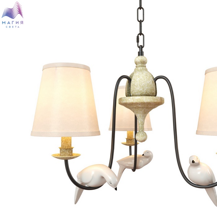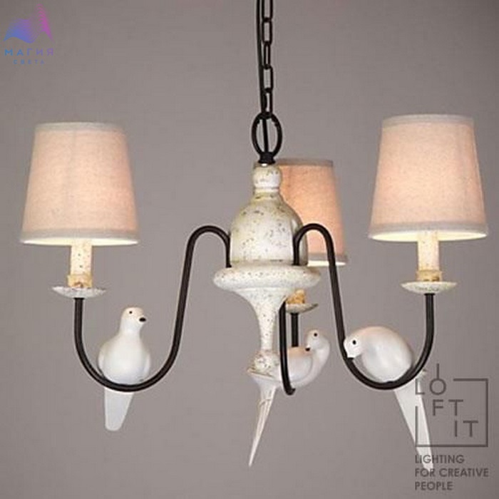 LOFT IT Birds подходит для украшения и освещения загородного дома или пространства в стиле "кантри". Металлический каркас декорирован акриловыми фигурками птичек. Плафоны выполнены из плотной ткани бежевого цвета, за счет чего создается мягкое освещение.