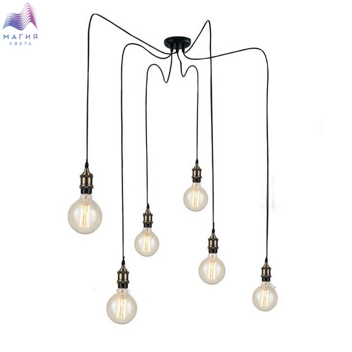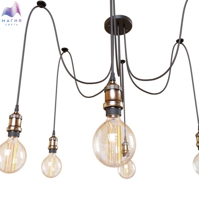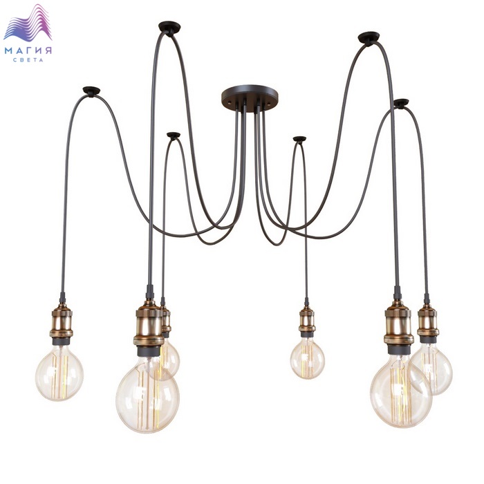 Подвесные люстры LOFT IT Spider идеально впишутся в интерьеры в стиле "лофт" или "ретро". Данные модели выполнены в белом, черном с бронзой или черном цвете. Материал исполнения - металл, пластмасса. Длину провода можно отрегулировать при монтаже.