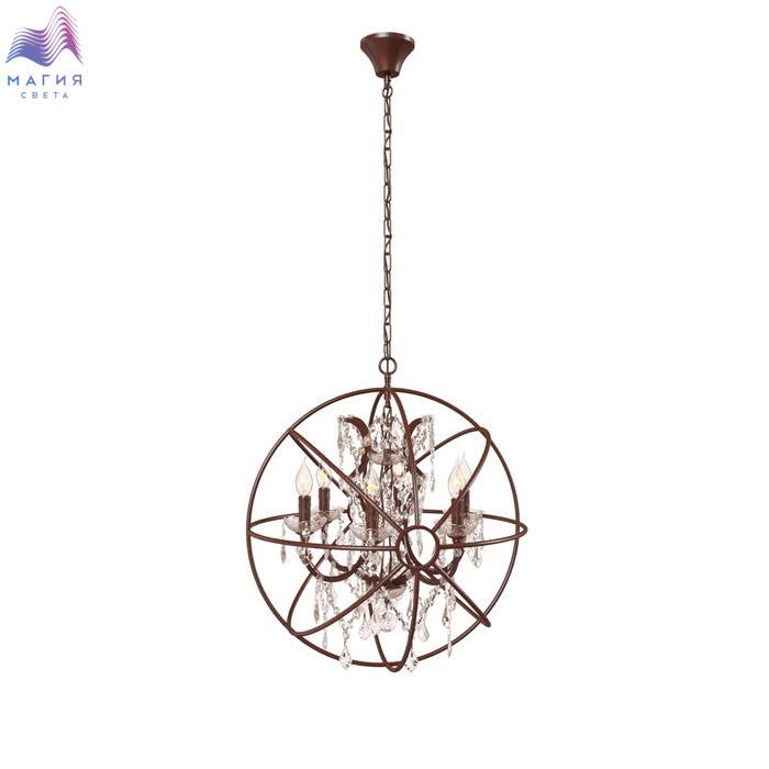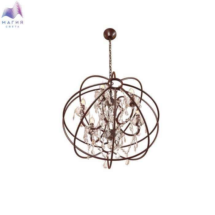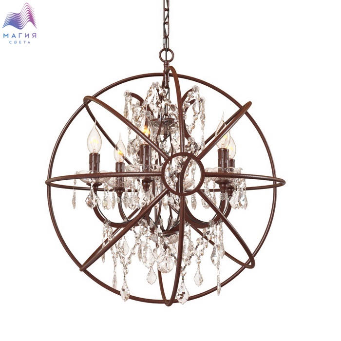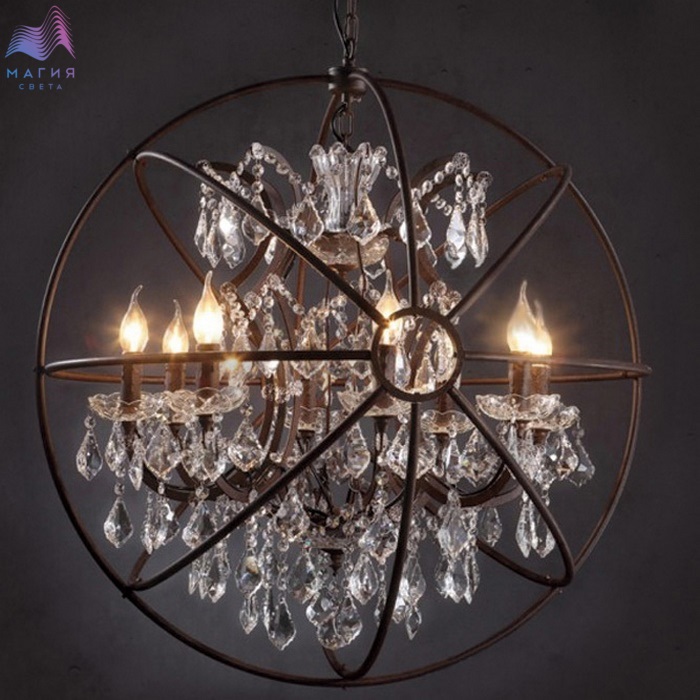 Серия LOFT IT FOUCAULT'S ORB CRYSTAL представлена подвесными люстрами разного диаметра, торшерами и бра. Светильники изготовлены из металла и покрыты состаренной коричневой краской, темно-коричневой или цвета хром. Люстры обильно декорированы прозрачными подвесками.