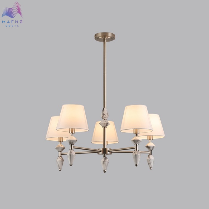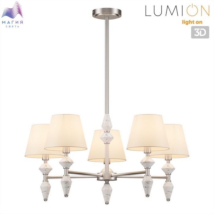 Коллекция светильников Lumion Vermont поражает изысканным керамическим декором, имитирующим белый мрамор. Мраморная керамика сочетается с белыми плафонами и объединена в единую композицию арматурой в цвете никель.