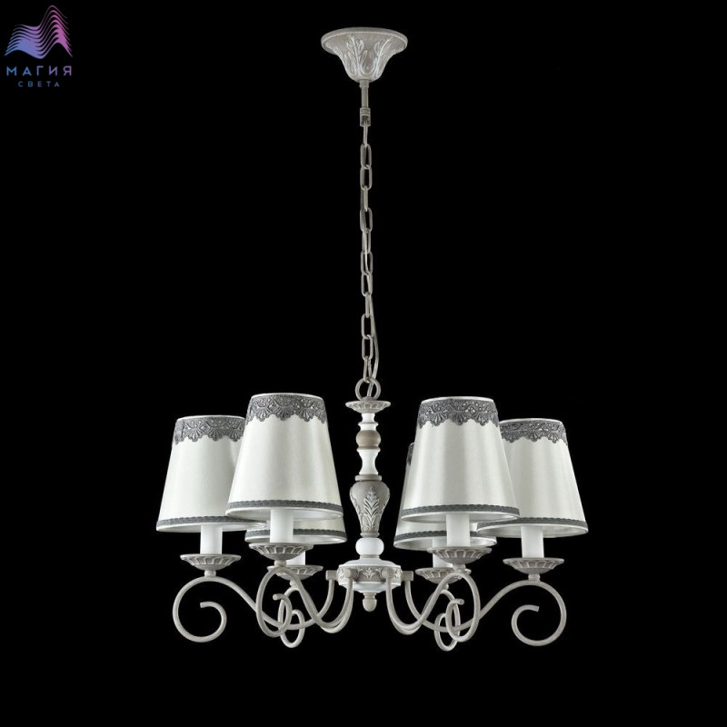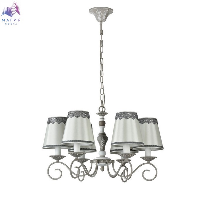 Коллекция Maytoni Bouquet удачно впишется в стиль деревенского дома. Изогнутые металлические рожки серого цвета дополнены белыми элементами. Конусообразные абажуры белого цвета вверху украшены серым кружевом.