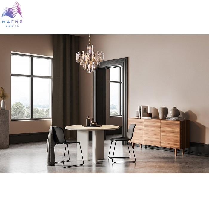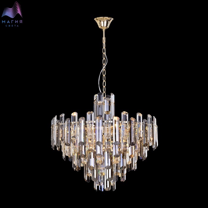 Серия Maytoni Flare обладает, с одной стороны, праздничным и торжественным, свойственным щедрому ар-деко, настроением, а с другой – смелым и динамичным, идущим в ногу со временем духом. Прозрачный хрусталь обрамлен металлическими рамками. Арматура из металла в золотом цвете подчеркивает богатство и роскошь модели.