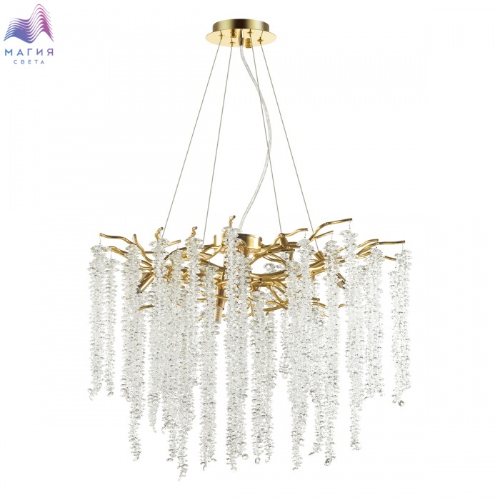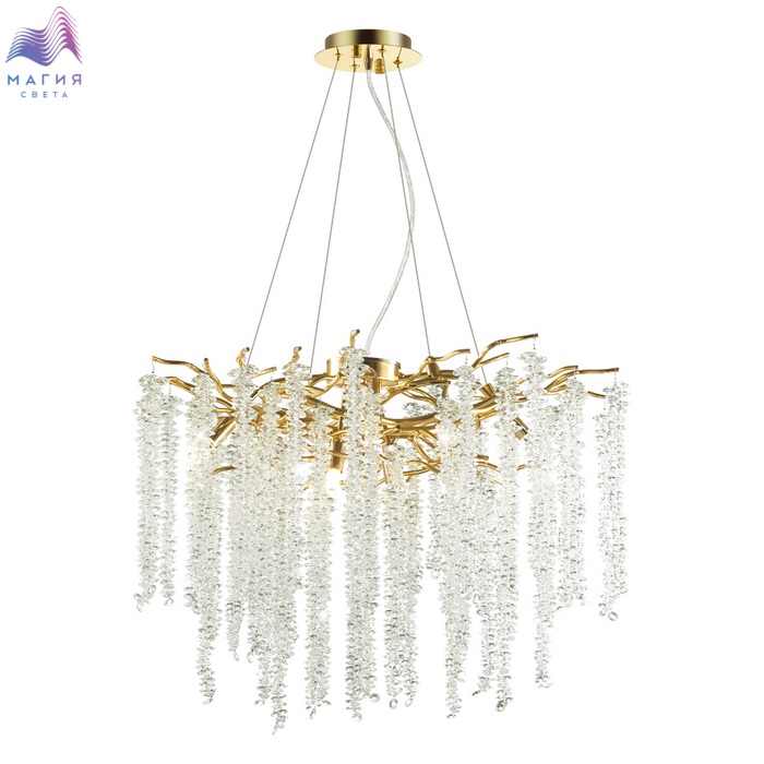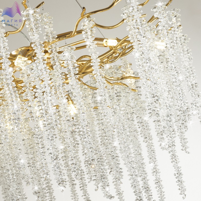 Серия Odeon light Banche — это природные мотивы, изящество линий и многообразие форм, выраженных в моделях люстр и настенных светильников. Множество свисающих подвесок из плотно нанизанных переливающихся хрустальных бусин, словно «сережки» на изогнутых ветвях плакучей ивы. Арматура в золотом цвете выполнена из алюминия. Аккуратная точечная сварка фиксирует соединения. Ручным способом можно формировать «крону» люстр и бра, подгибая и выпрямляя ветви. В линии есть потолочная и подвесная круглые люстры, овальная люстра и бра. Популярная сейчас овальной формы модель предназначена для размещения над обеденной зоной.