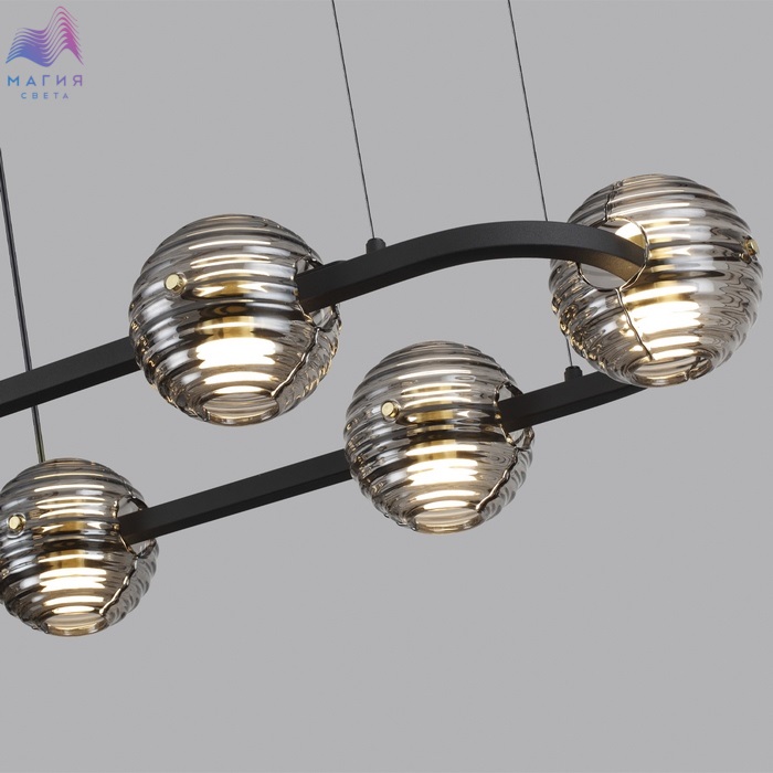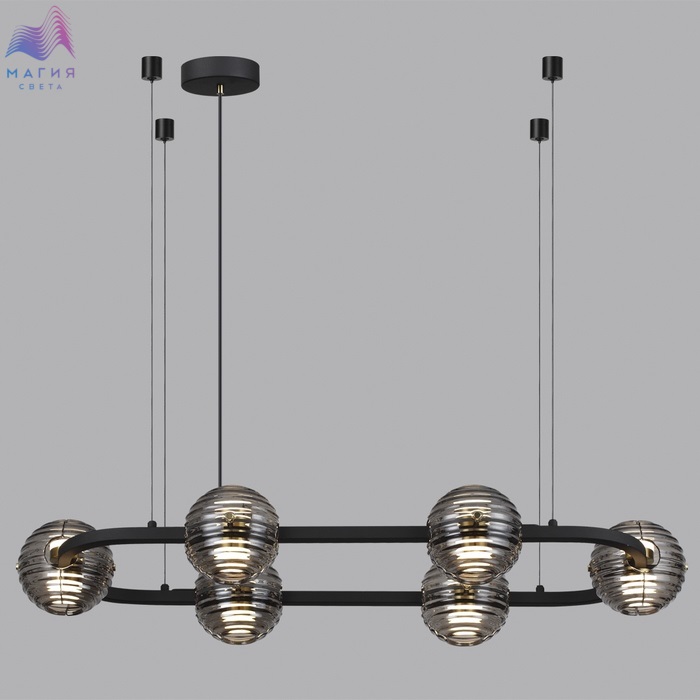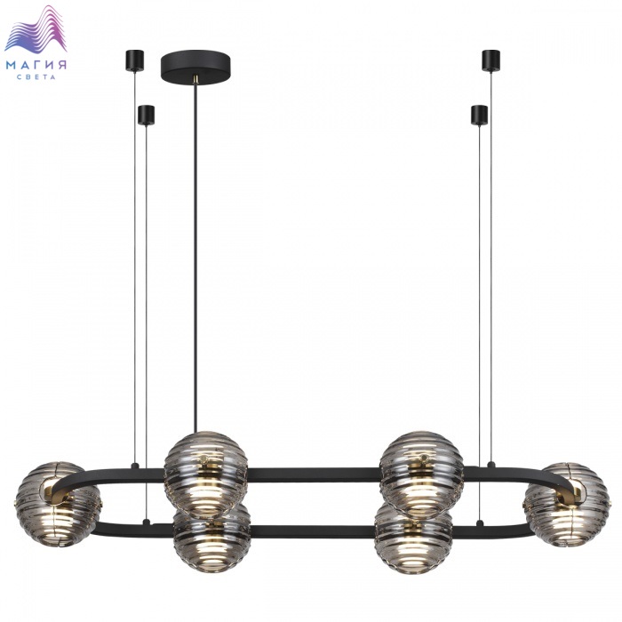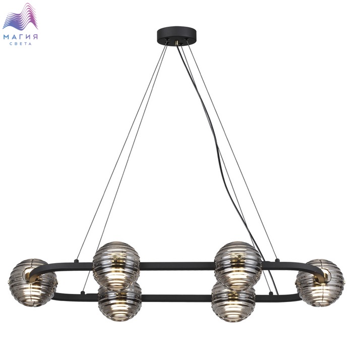 Odeon light Troni — роскошные кольца со стеклянными плафонами из двух полусфер. LED элемент красиво рассеивает свет сквозь рифленую текстуру дымчатого стекла вверх и вниз. Из колец диаметром 630, 930 и 1130 мм можно создавать композиции на 2 и 3 кольца. Модель овальной формы отлично подойдет для размещения над обеденной или рабочей зоной. Одиночный подвес и бра дополняют линейку светильников линии Troni.