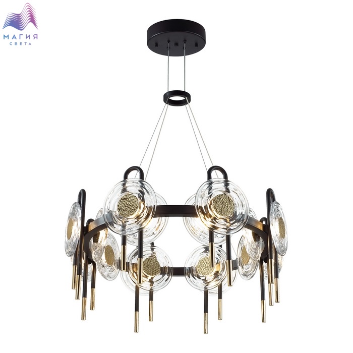 Строгий дизайн, природные узоры и роскошные золотые акценты гармонично сочетаются в светильниках серии Odeon light exclusive Magnet. Главный декоративный элемент — металлический медальон, украшенный сверкающим чеканным паттерном, он дополнен стеклом, которое напоминает расходящиеся круги на воде и мягко рассеивает свет от LED источника.