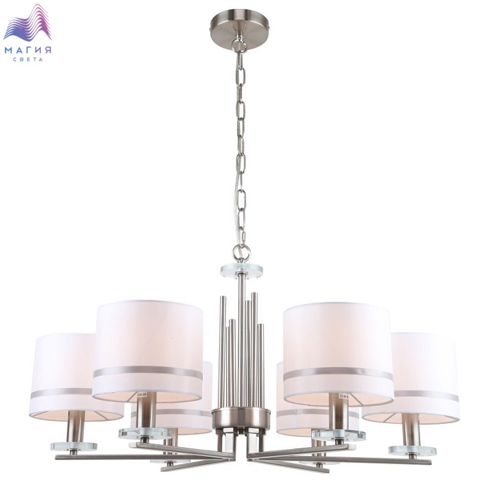 Люстра подвесная 1045/11/06P Stilfort серии Chart выполнена в классическом стиле. Арматура изготовлена из хромированного металла. Плафоны люстры выполнены в белом цвете и украшены серебристым ободком.