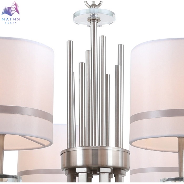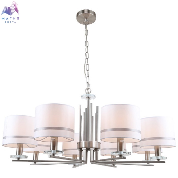 Люстра подвесная 1045/11/08P Stilfort серии Chart выполнена в классическом стиле. Арматура изготовлена из хромированного металла. Плафоны люстры выполнены в белом цвете и украшены серебристым ободком.