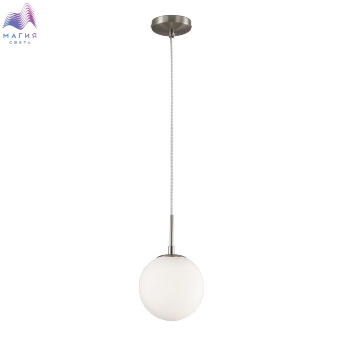 Подвес Citilux Томми CL102014 с одним плафоном. Основание светильника металлическое, круглой формы, цвет матовый хром. Плафон стеклянный, матовый, в форме шара.