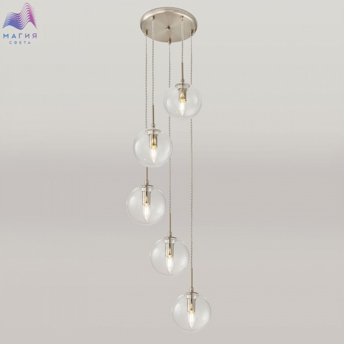 Подвесной светильник Citilux Томми CL102051 с пятью плафонами. Основание светильника металлическое, круглой формы, цвет матовый хром. Плафоны стеклянные прозрачные в форме шара, подвешены ниспадающим каскадом, высота которого легко регулируется. Великолепно выглядит в зоне стола или над стойкой бара. Прекрасно осветит лестничные проемы и пространства со вторым светом.